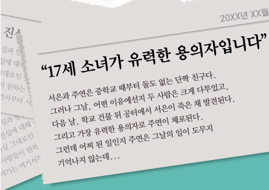 둘도 없는 단짝인 주연이와 서은이. 한 날 서로는 크게 다투게 된다. 서로 다툰 다음 날, 학교 뒤 공터에서 서은이가 죽은 채로 발견된다. 가장 유력한 용의자로 주연이가 체포되지만 주연이는 서은이와 함께 있던 그날을 기억하지 못한다. 나온 증거에 묻어있는 주연이의 지문과 각종 언론, 경찰 그리고 학교 친구들, 부모님까지 시간이 지날수록 모든 것들이 범인은 주연이라고 가리키고 있다. 부모조차 자신을 믿지 않고 체면을 생각하는 모습들에 더욱 혼자라고 느끼게 되는 주연. 변호사와 주변 학교, 학원 친구 선생님까지 주연이 편은 찾기 드물다. 주연이는 어쩌면 진짜로 자기가 서은이를 죽였을지도 모른다는 생각과 유일하게 의지하고 좋아했던 친구 서연이의 죽음 사이 아무도 자신을 믿어주지 않아 괴로움을 느낀다. 주연이는 대체 어떤 아이였던 걸까?